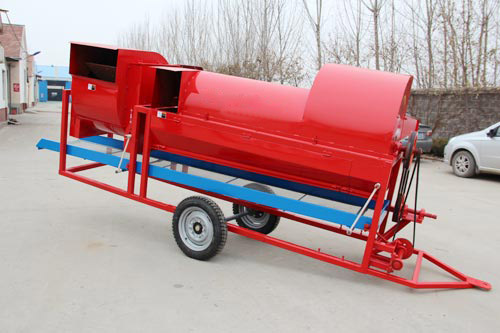 花生摘果機包括簡單的手搖花生摘果機、與發動機配套的花生摘果機、拖拉機配套的摘果機和電動機配套的摘果機?;ㄉ麢C的結構比較簡單.其主要工作部件一般由彈齒滾筒、滾筒篩、固定彈齒、風扇等組成。無論配套什么動力,其工作原理都是相同的,均采用蓖梳式摘果原理。